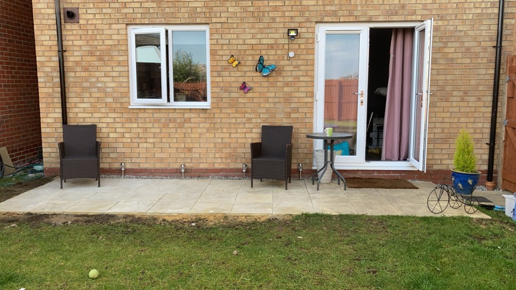 I had water log issues in my back garden. I figured laying a small patio over said swampy area would help to solve the problem. An annoying aspect of my character, is that once I have an idea in my head, I run with it. (This can have both good and disastrous results.)